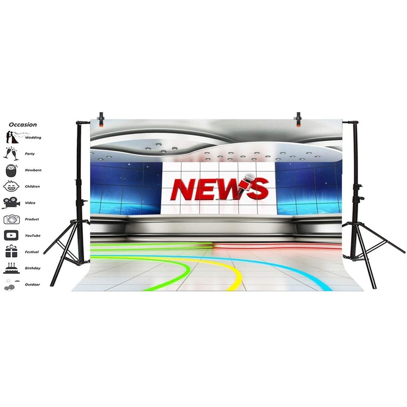 Leyiyi 5x3ft News Broadcast Hall Backdrop Microphone TV Show Record Recetation Desk Program Front Table Advertising Billboard Photo Background Business Study Portrait Studio Prop Vinyl Wallpaper