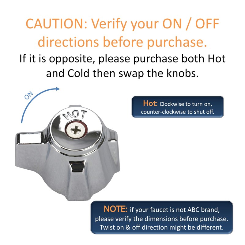Leyso Hot Knob Handle Kit with Stem for ABC 4" Hand Sink Faucet, Twist Clockwise to Open ABC-1004-KHRH