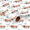 - Dog Design: This adorable wrapping paper features a delightful dachshund pattern, showcasing charming dogs wearing red striped sweaters, bone illustrations, and "Woof" text. Ideal for adding a playful and cheerful touch to your gifts, perfect for birthdays, holidays, and other celebrations.