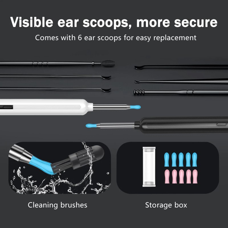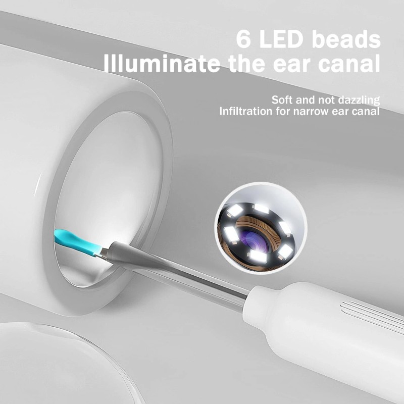 - [1080P HD Camera&6 LED Lights]The tool is equipped with a gyroscope, which can be used in a 360°wide-angle. When used, the tool will slowly warm up to room temperature, ensuring a bright and clear view and comfortable experience when cleaning your ears.