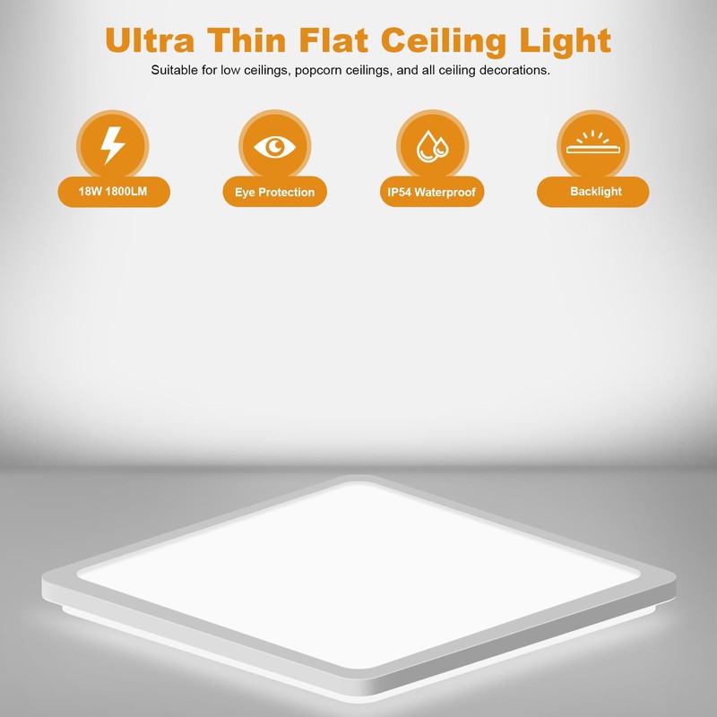 - Eye protection and flicker-free: this flat ceiling light has a high colour rendering index of CRI80+. The vivid and natural light allows us to see the real and original colour of objects, which is more eye friendly. The LED ceiling light uses a high-quality lampshade shell made of PC material with a bright surface. Due to the higher light transmission, the light is evenly distributed throughout the room and does not glare, which can protect eyes from bright light.