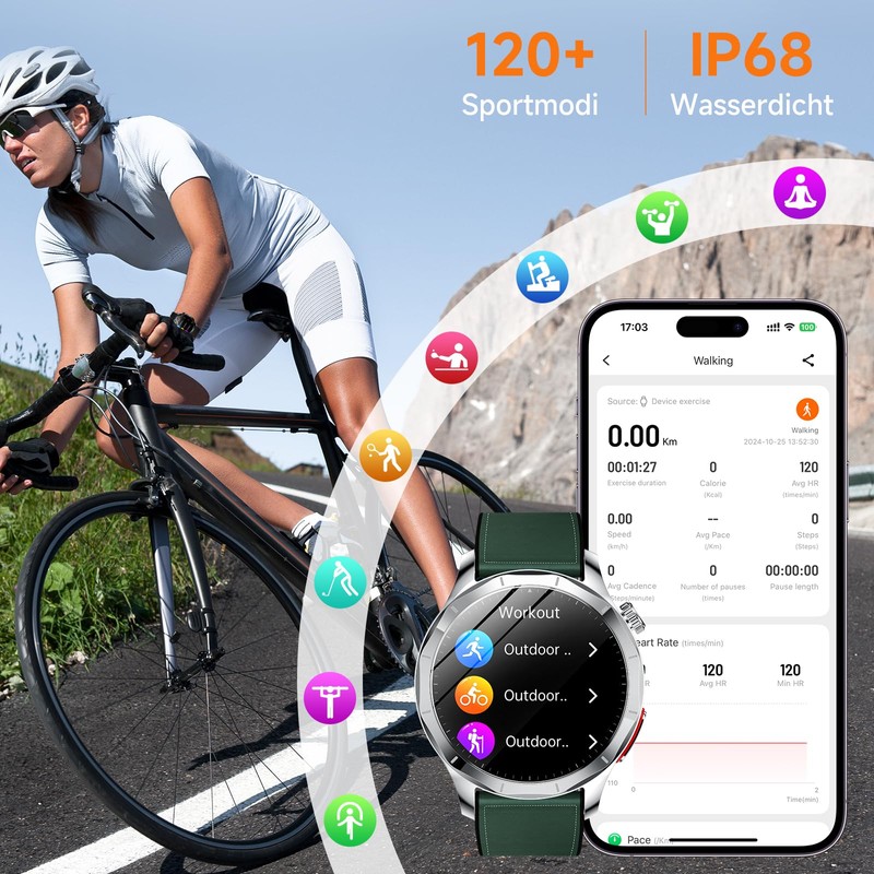 - 120+ sports modes & IP68 waterproof: our smart watches for men and women are equipped with 120 sports modes, so you can effortlessly track a variety of activities such as walking, running, cycling. The smart watch monitors the metabolic equivalence value (MET) in real time and helps you accurately estimate training intensity and calorie consumption for a more efficient and scientifically sound workout. IP68 waterproof for sweaty, rainy or hand washing. Not suitable for swimming or water vapour environments