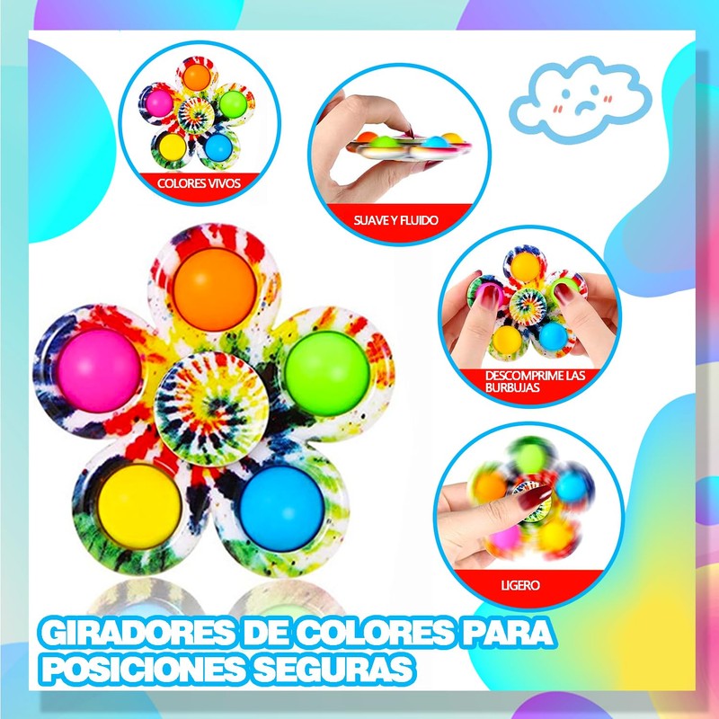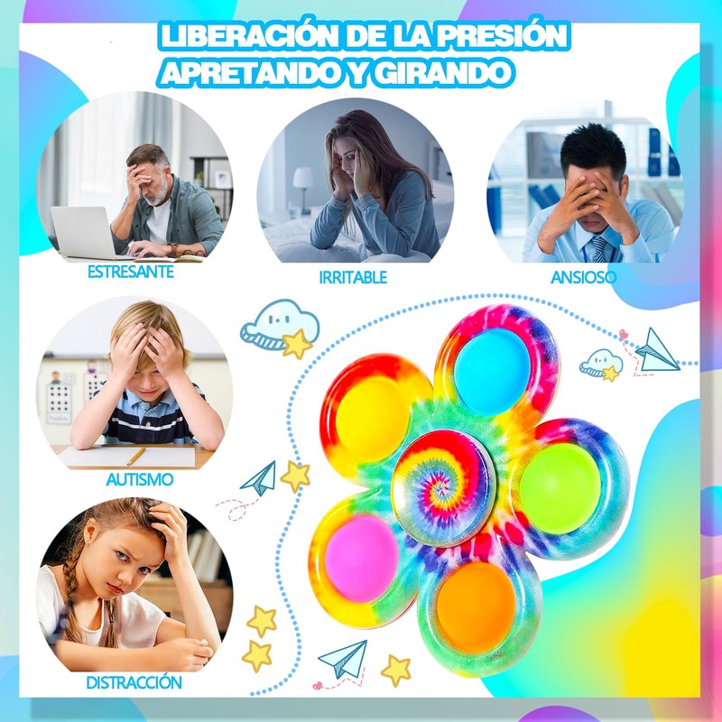 - 🎁🌟💒[Juguete inquieto] presione y haga estallar los botones suaves giratorios, cómodos de tocar y mejore la experiencia táctil, los colores múltiples giran maravillosamente, puede aliviar con eficacia la ansiedad, la tensión, pero también enfocar, restaurar el humor, corregir malos hábitos y librarse del aburrimiento en vida de cada día.