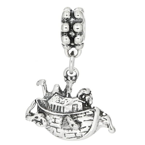 LGU Sterling Silver Oxidized Noah's Ark with Animals Dangle Bead Charm