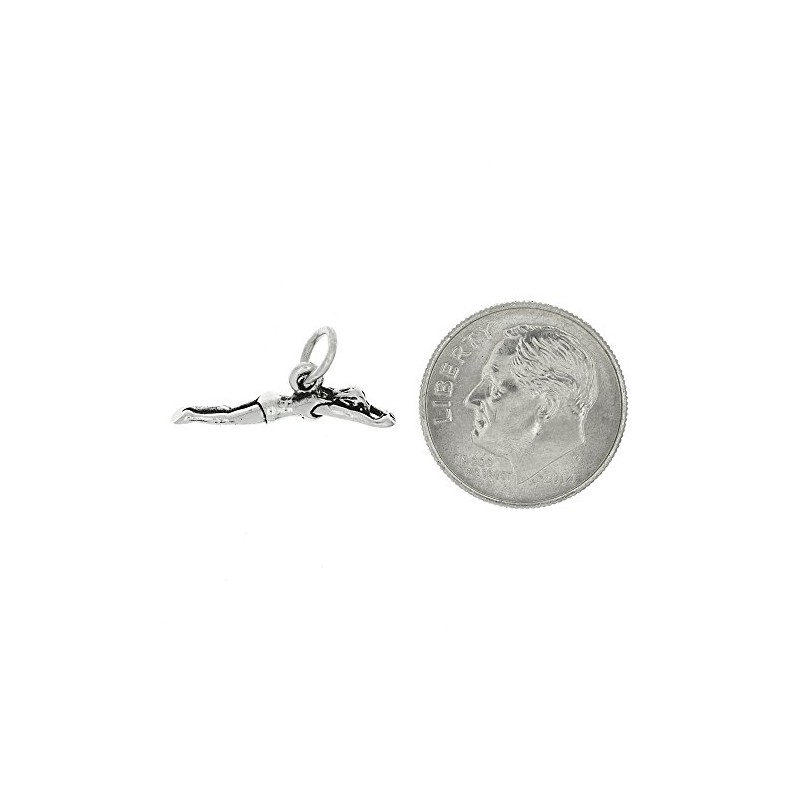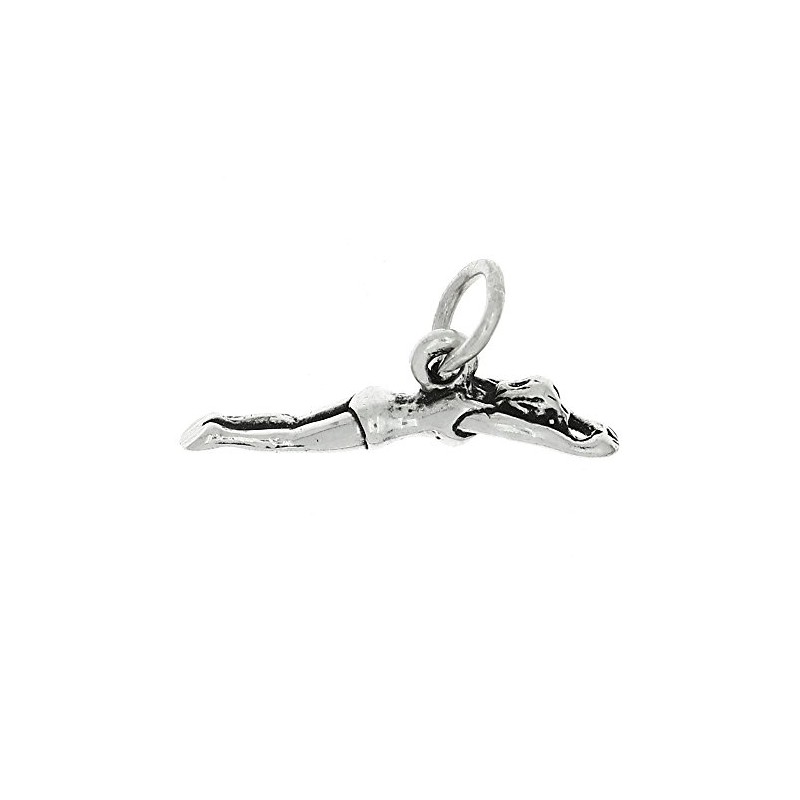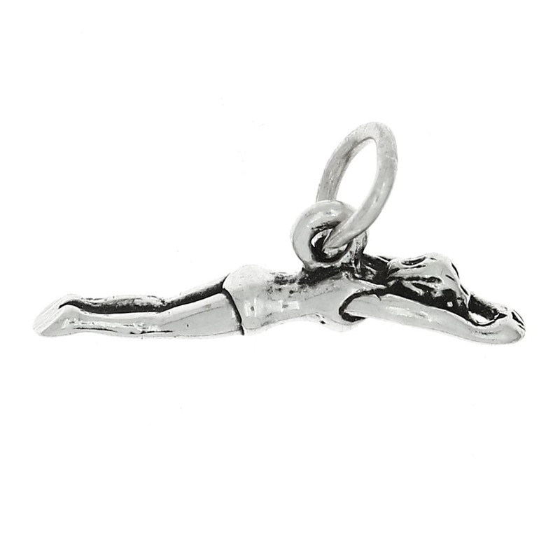 LGU Sterling Silver Oxidized Tiny 3D Female Diver Swimmer Charm