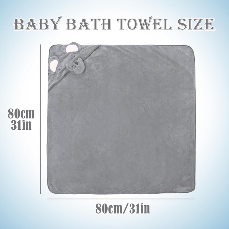 LHLZNB Hooded Baby Towel with Animal Ears | Ultra Soft Bamboo Bath Wrap for Newborns & Toddlers | Cute Design, 80x80cm Hypoallergenic baby towel (Grey Elephant)