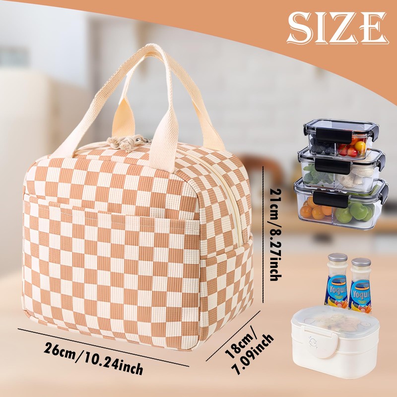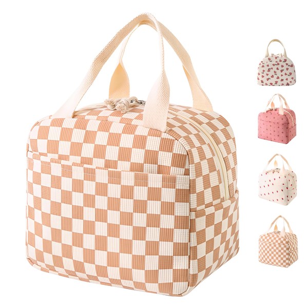 LHLZNB Insulated Lunch Bag for Women - Large Capacity Thermal Tote with Durable Work Lunch Box for Women & Girls, Leakproof Food Bag for Office, School, Picnic (Coffee Grid)