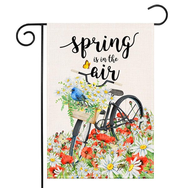LHSION Spring is in the Air Garden Flag 12.5 x 18 Inch Bike with Floral Decorative Double Sided Burlap Flag For Spring Summer Farmhouse Yard Seasonal Decor