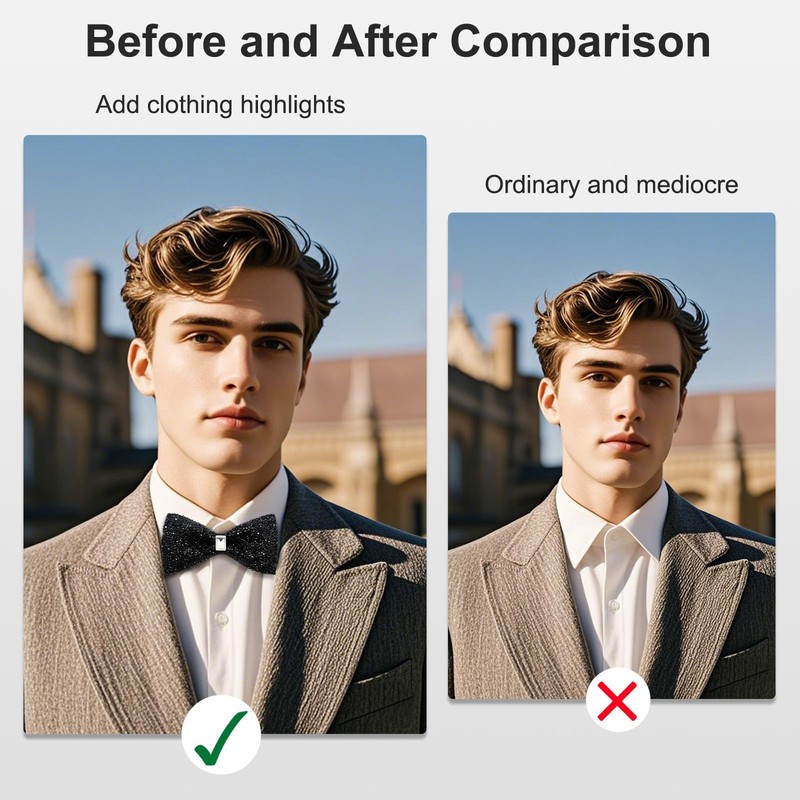 - Rhinestone Decoration: Our Bowties man selected sparkle rhinestones, carefully embedded in the bow tie, shinny and delicate; Men's bow ties instantly enhance your overall style of luxury and fashion, bring out your noble temperament