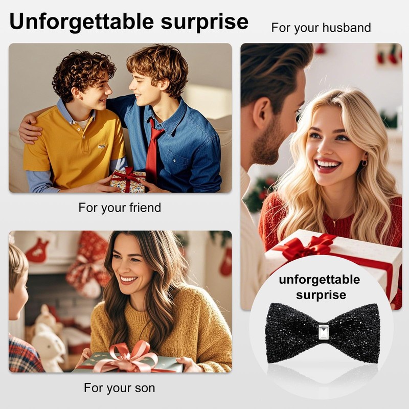 - Touching Surprise: Rhinestone bow tie is a thoughtful surprise to your families and friends; It not only represents your care for him, but also will add a unique fashion flair to him, this sparkly bow tie will be an unforgettable surprise