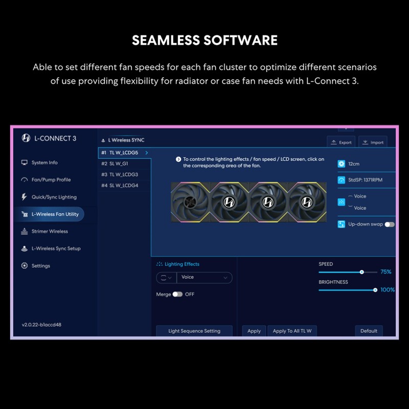 • Simplified Installation & Cable Management: Say goodbye to traditional 5V ARGB and PWM headers. With L-Wireless Sync technology, installation is faster and cleaner, allowing effortless cable management and more focus on your custom PC build.