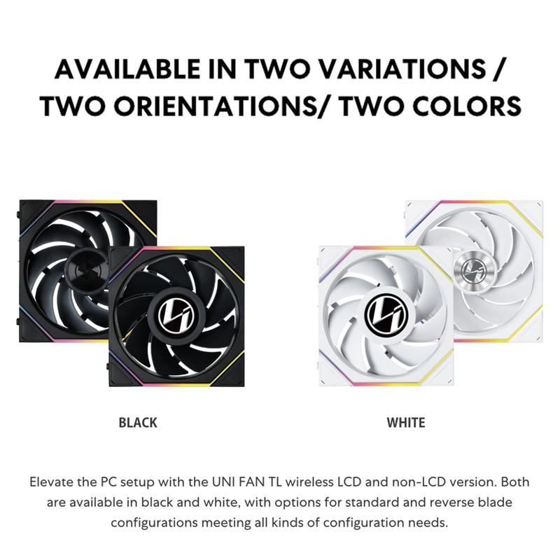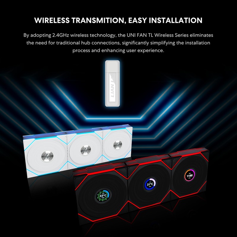 • 2.4 GHz Wireless Control: Experience the freedom of true wireless control with UNI FAN TL LED WIRELESS and TL LCD WIRELESS. Featuring advanced 2.4 GHz wireless technology, these fans eliminate cable clutter while seamlessly managing fan speed, RGB lighting, and even an LCD display.