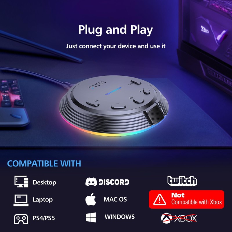 LIANGSTAR Gaming USB Microphone with 5 Voice Change, Mute Button, Desktop Pod...