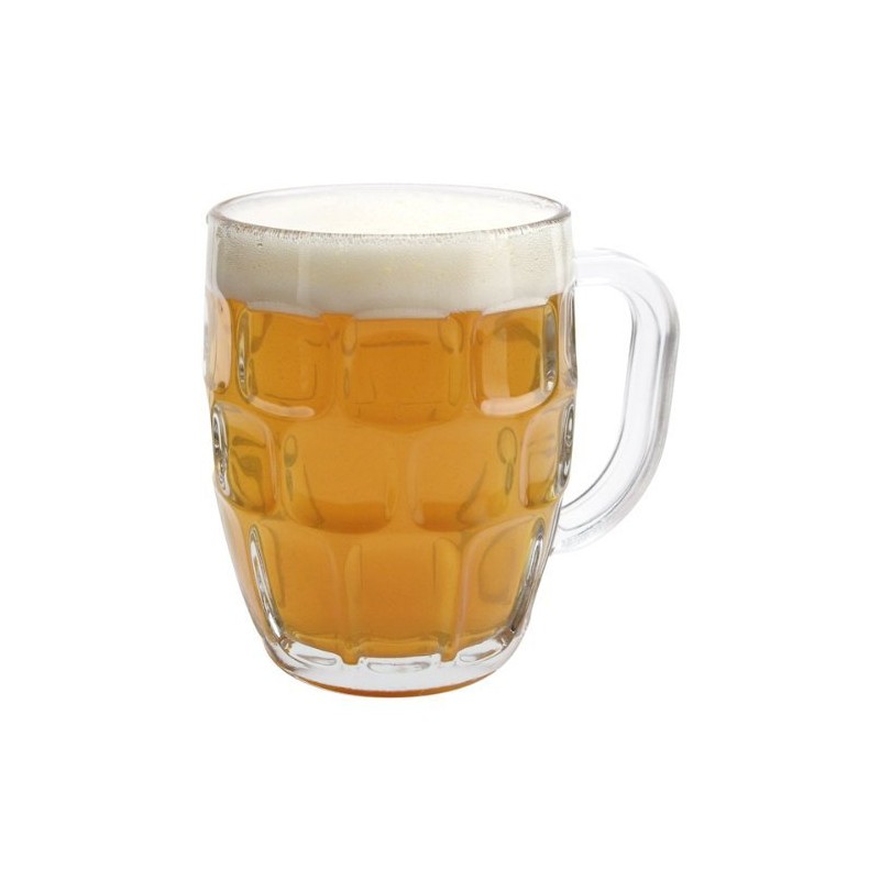 Serve all your favorite beers with this glass beer stein mug from Libbey. The durable glass mug features a stylish dimpled design. The large 19.25 ounce capacity is plenty for a very generous pour. The handle keeps your hand away from glass to keep it nice and cold.