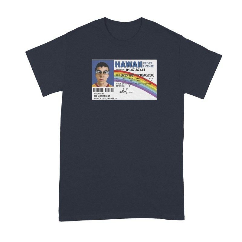 LIBBY'S BENCHMARK27 DESIGNS McLovin License Shirt McLovin Tshirt Superbad McLovin T Shirt Midnight Navy