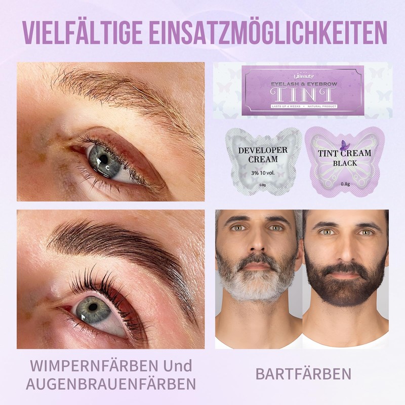 - Multiple applications – with this lash tint kit set, you can not only dye eyelashes and eyebrows, but also beards, sideburns or other hair