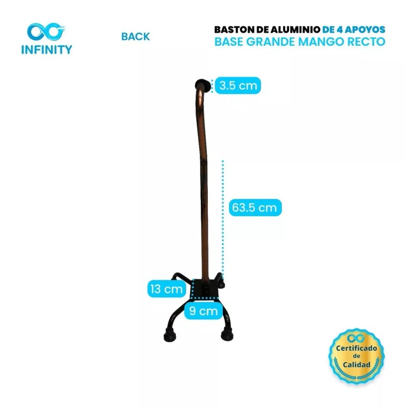 BASTON DE ALUMINIO INFINITY DE 4 APOYOS BASE GRANDE MANGO RECTO BRONCE
