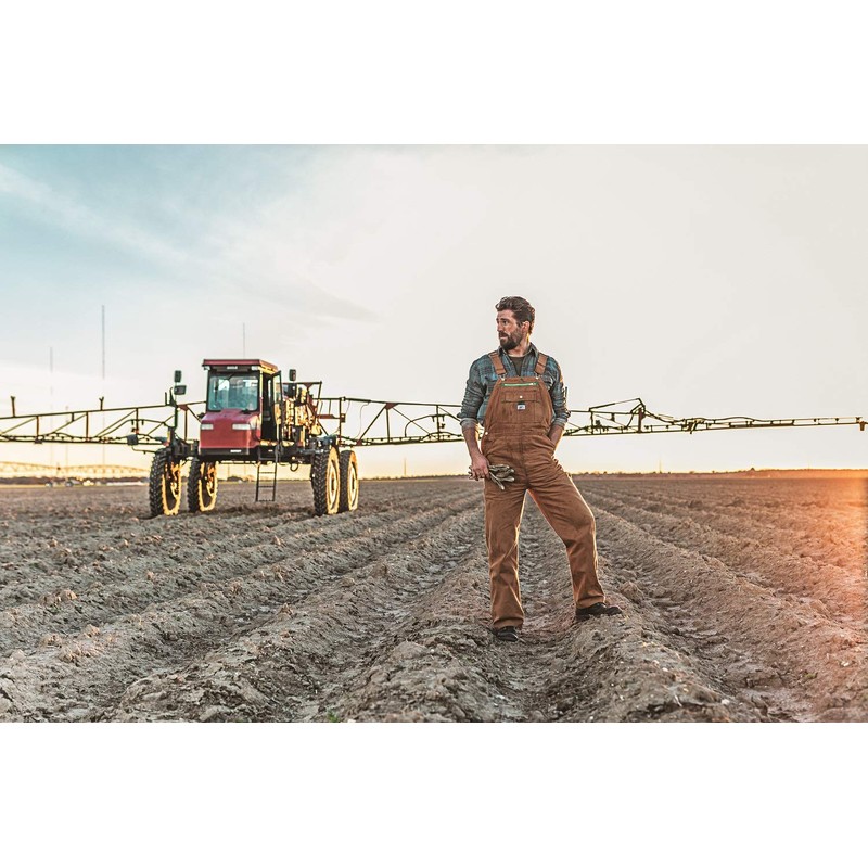 - Durable cotton duck bib overalls with triple-needle stitching and reinforced stress point bar tacks