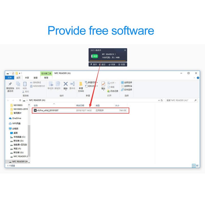 - 2, Product Features: Support to read and write both 125KHz RFID cards and 13.56MHz RFID cards. Built-in mobile disk with decoding software, support to decode 13.56MHz encrypted card.