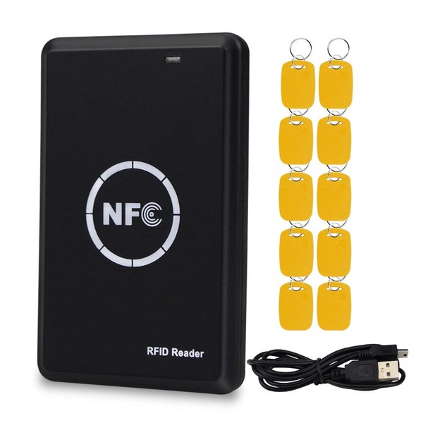- 5, Package List: 1 * NS106 card duplicator; 1 * USB cable; 10 * Yellow RFID keyfobs.