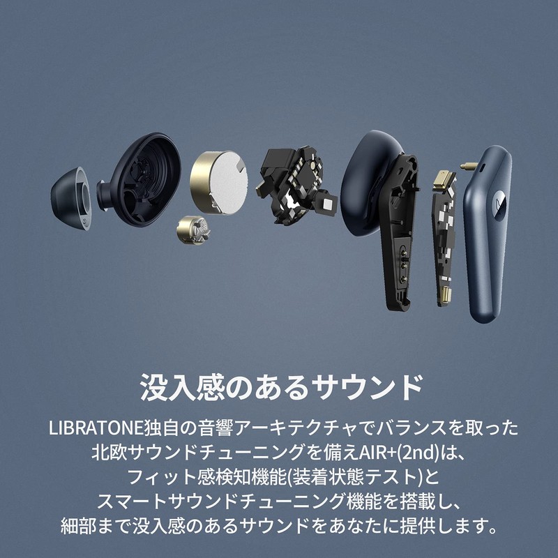 - Immersive Sound & Clear Calls: LIBRATONE AIR+ (2nd) features a balanced Nordic sound tuning with LIBRATONE's unique acoustic architecture, and is equipped with a wear-condition test function (fit detection) and smart equalizer function to provide you with immersive sound with details. Equipped with dual microphone, you can make hands-free calls and even better call quality. Eliminates noise during calls and sends your voice to the opponent. Make phone calls smoothly even in telework meetings or walking call