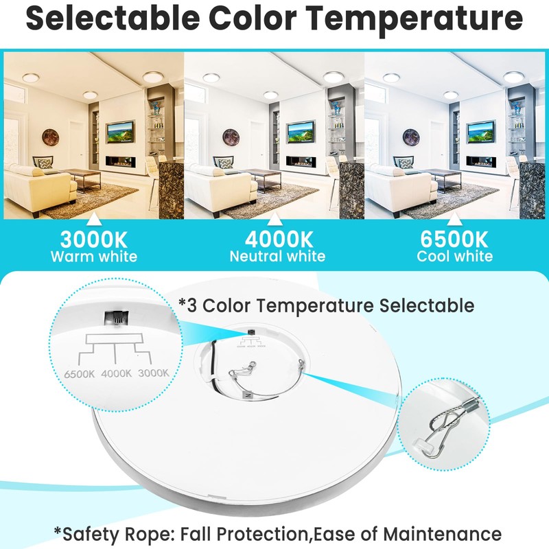 - 【3 Color Temperature Options】The small wired LED ceiling mount light brushed nickel offers three color temperature options to suit various spaces. Choose from 3000K warm white, 4500K neutral white, and 6500K cool bright light for personalized illumination in bedrooms, kids room, dining room, study room, office, workshop, kitchen, hallway, balcony, basement,stairwell, warehouse and hotel.(Not dimmable).