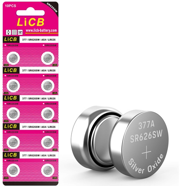 LiCB 10 Pack SR626SW 377 Watch Battery,Long-Lasting & Leak-Proof,High Capacity Silver Oxide 1.55V Button Cell Batteries for Watch
