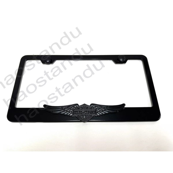 One (1) brand new BLACK Stainless Powder Coated license plate frame with 3D Emblem durable and weather proof, will NOT RUST with 2 secure tabs at the back to prevent rattle noise from car vibration. USA standard size: 12.25 inch by 6.3 inch Fit all USA and Canada plate, fit all year, all model, any vehicle brand Come with matching screw cap covers