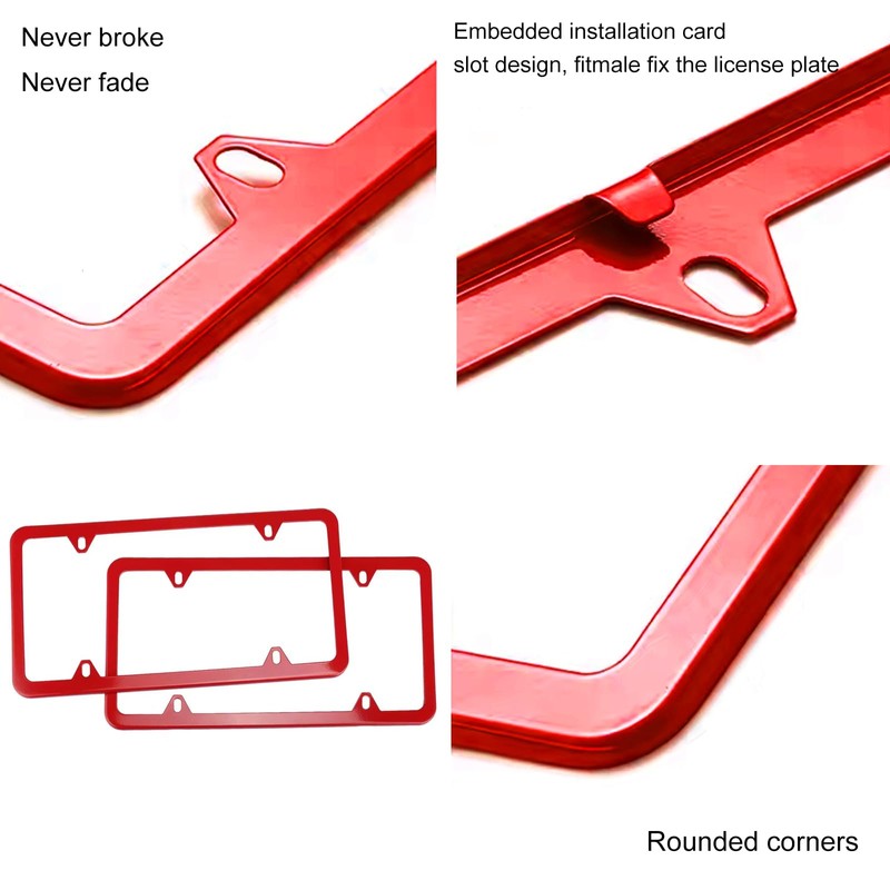 - 【Advanced Materials】The red license plate is made of super sturdy aluminum alloy, which is stronger and more durable than aluminum and not easy to deform and age. The stainless steel has been treated with powder coating for anti-corrosion and can be used for a long time without rusting or rotting easily.