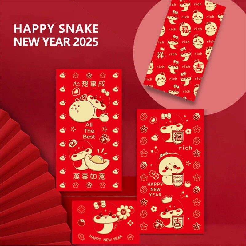 - VARIETY & VALUABLE PACK: Enjoy a diverse collection of 36pcs of Chinese red envelopes, each adorned with one of 6 unique cute designs, specially crafted for the Year of the Snake 2025. Celebrate in style!