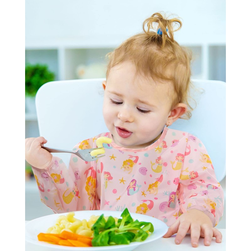 - Ultimate Spill and Debris Protection: The toddler bibs feature long sleeves and a wide, deep catch-all pouch, ensuring full coverage for crumbs, spills and debris. With these bibs, you can always keep your baby clean, dry, and mess-free.