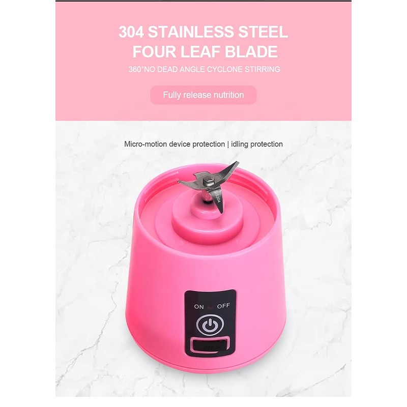 Licuadora Portatil Para Papillas,Malteadas, Frutas Y Verduras, 4 Aspas, USB, 380 ML (Rosa)