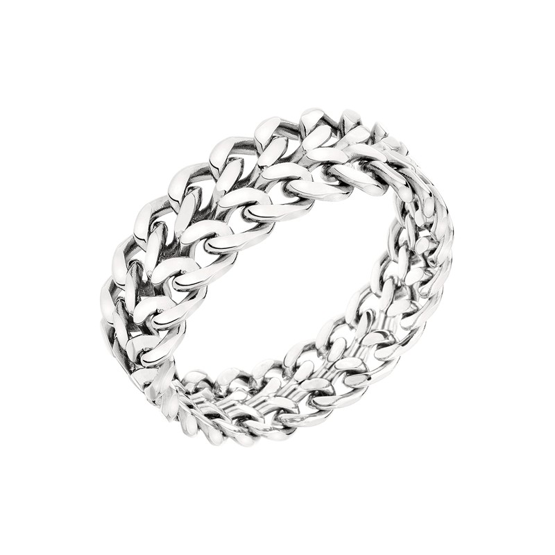 • The ring is made of polished stainless steel, thanks to its braided structure, and its flexible shape gives any outfit a cool and glamorous look. Material: polished stainless steel. Size: 56