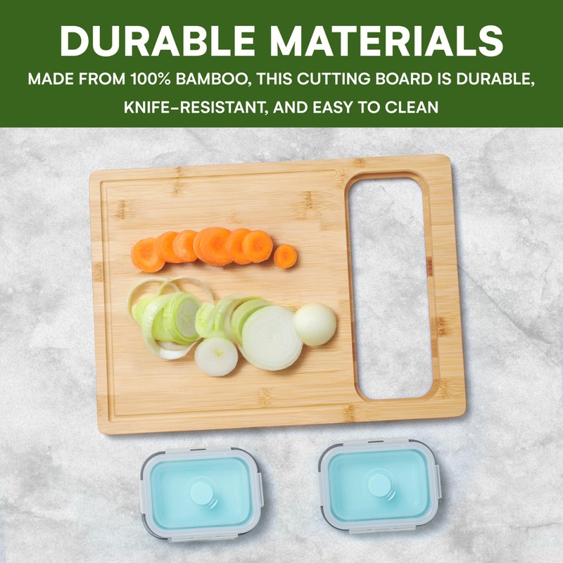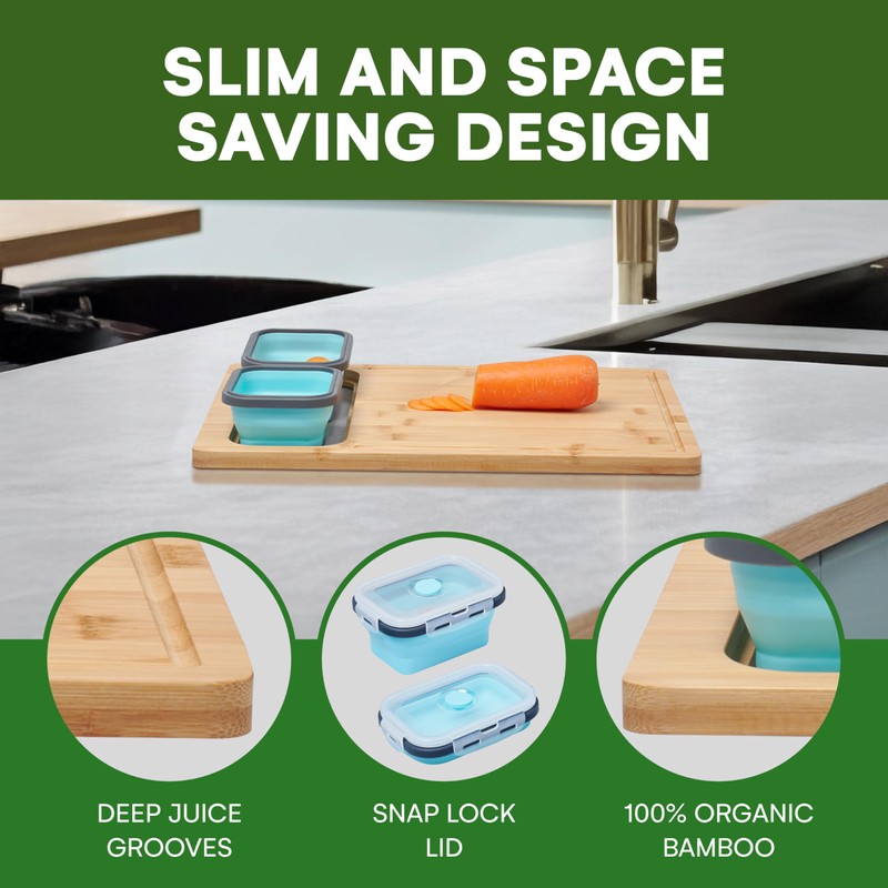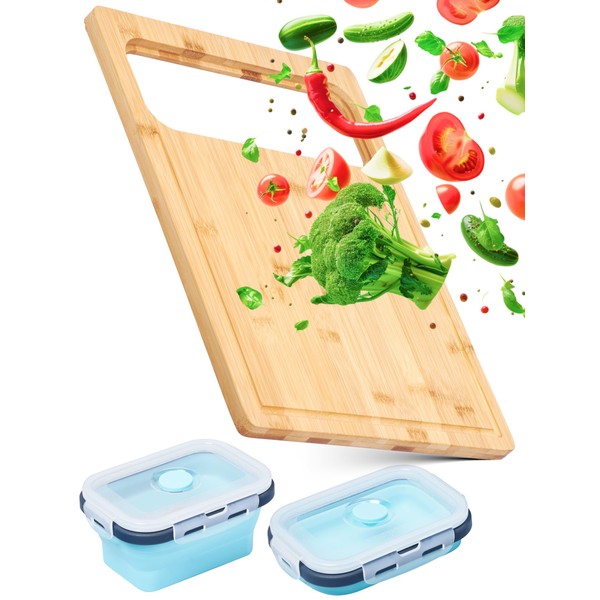 - Convenient set: Includes one bamboo cutting board and two handy containers, providing a complete solution for daily kitchen tasks without taking up too much space