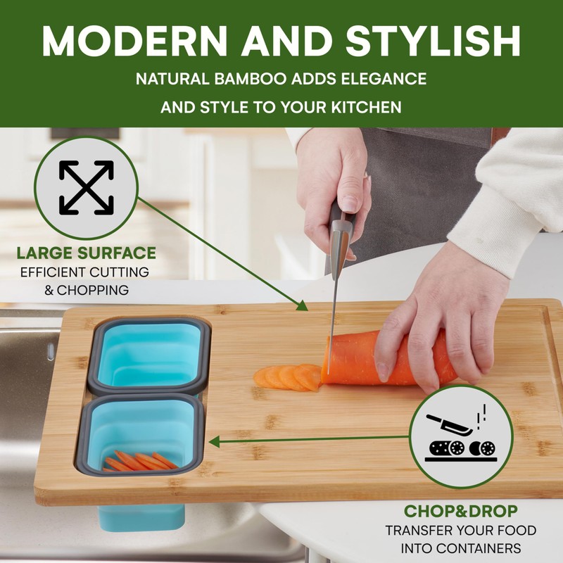- Space-saving design: Utilize your kitchen more efficiently with this cutting board that fits neatly over the sink or on the countertop, featuring anti-slip feet for stability