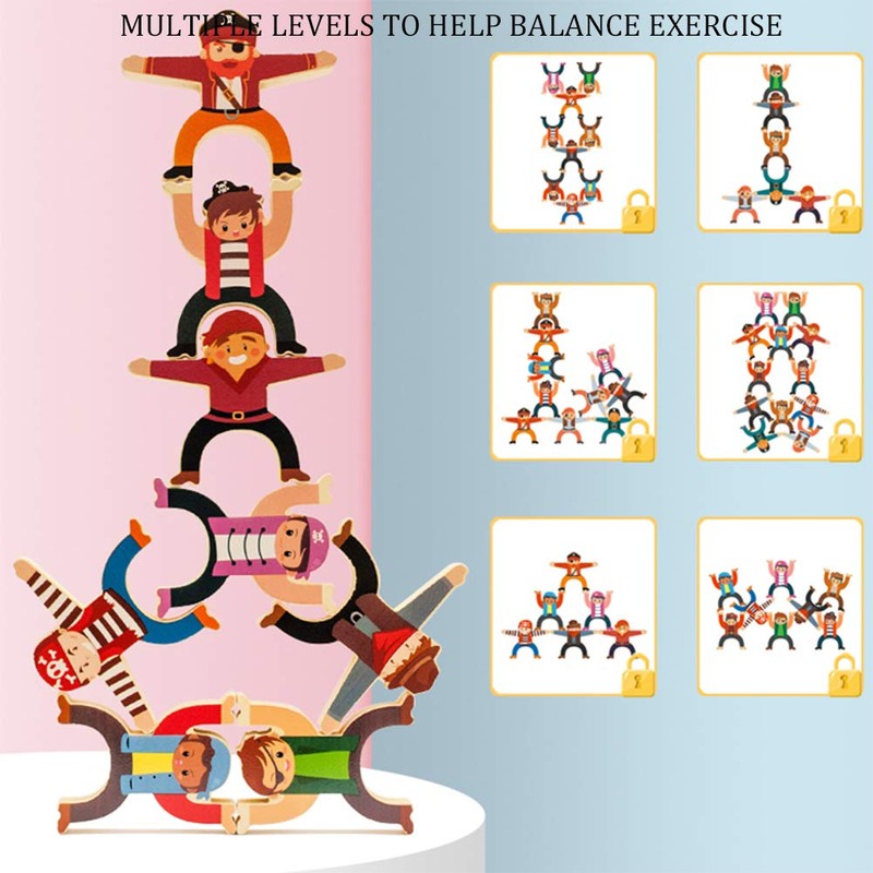 Lierpit 海賊 木製積み上げおもちゃ バランスブロックセット 子供用 3Dおもちゃ