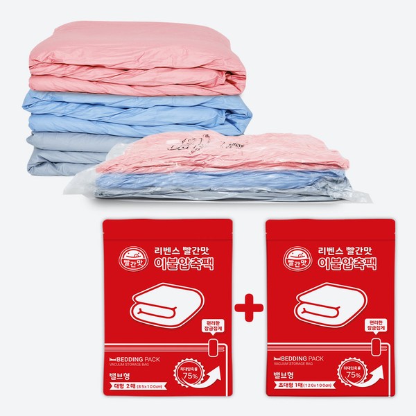 Lievens Red Flavor Blanket Compression Pack (2 large sheets + 1 extra large sheet) / 리벤스 빨간맛 이불압축팩 대형 2매+초대형 1매
