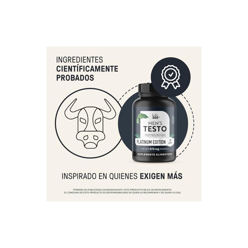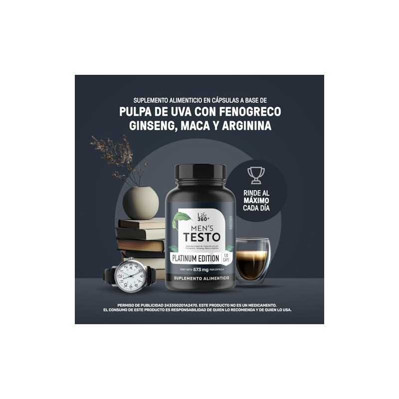 LIFE 360+ - LIFE 360+ Fórmula Avanzada Platinum Mens Testo | 120 Cápsulas | Maca Negra, Maca Roja y Amarilla, L-Arginina, Creatina, Zinc, Vitamina D, Magnesio, Ginseng y Guarana | Suplemento Alimenticio. 🚀 Producto más vendido con miles de clientes satisfechos. Diseño ergonómico y funcionalidad excepcional. ⏰ Oferta por tiempo limitado. Ideal para quienes buscan lo mejor en calidad y estilo. Producto auténtico con satisfacción total asegurada. ¡No te quedes sin el tuyo y aprovecha esta oportunidad única!