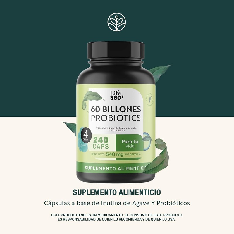 LIFE360+ 60 Billones Probiotics es un suplemento alimenticio que combina probióticos e inulina de agave. Cada frasco contiene 240 cápsulas. ¡Aprovecha los descuentos exclusivos en Amazon!