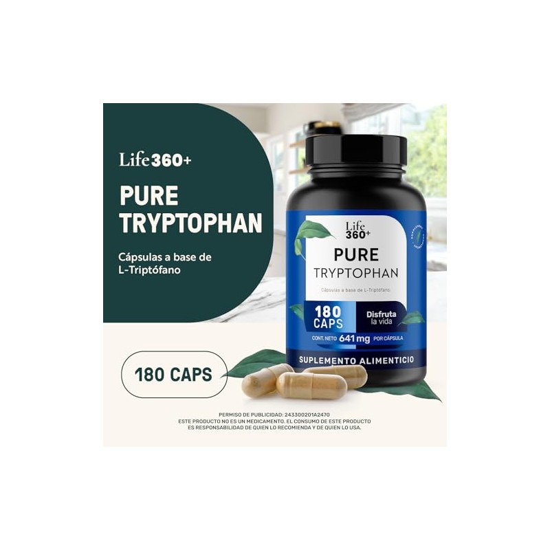 LIFE 360+ - Life 360+ PURE TRYPTOPHAN | 180 cápsulas a base de L-Triptófano | Suplemento Alimenticio | Cápsulas de gelatina y agua | Suplemento Alimenticio a base de L-Triptófano con 180 en tarro. ⭐ Calidad premium certificada con excelentes reseñas. Materiales de alta gama y acabados premium. ⭐ Miles de reseñas positivas. Ideal para quienes buscan lo mejor en calidad y estilo. Producto auténtico con satisfacción total asegurada. ¡No te quedes sin el tuyo y aprovecha esta oportunidad única!