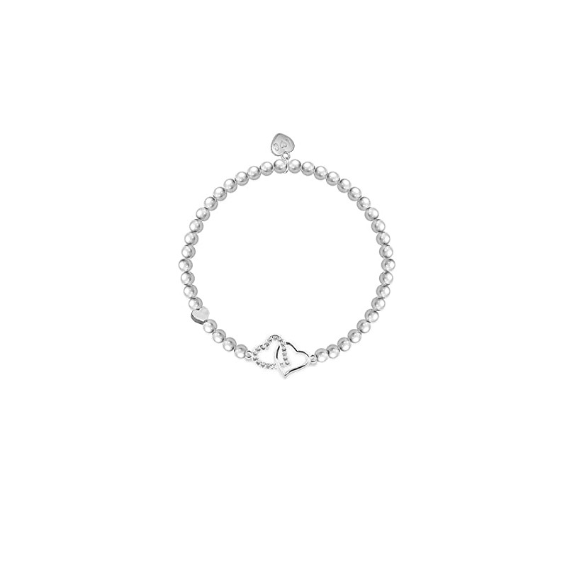 Pure silver plated entwind heart Charms with diamantes, presented on a 5mm beaded stretch bracelet. The bracelet comes presented in a luxury gift box with a Just Because 'YouAre A Beautiful Friend' card. All jewellery is finished to the highest standard & E-coated to prevent any tarnishing.