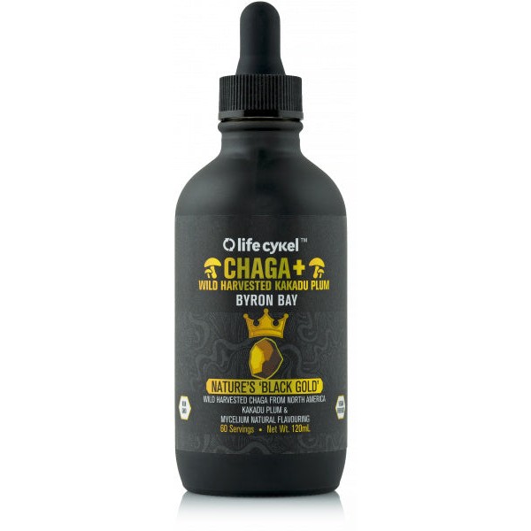 Ingredients: Filtered Water, Alcohol (20-24% v/v), Mushroom Flavour: Wild Harvested Dried Chaga (Inonotus obliquus) Sclerotia, Kakadu Plum Natural Flavour.
