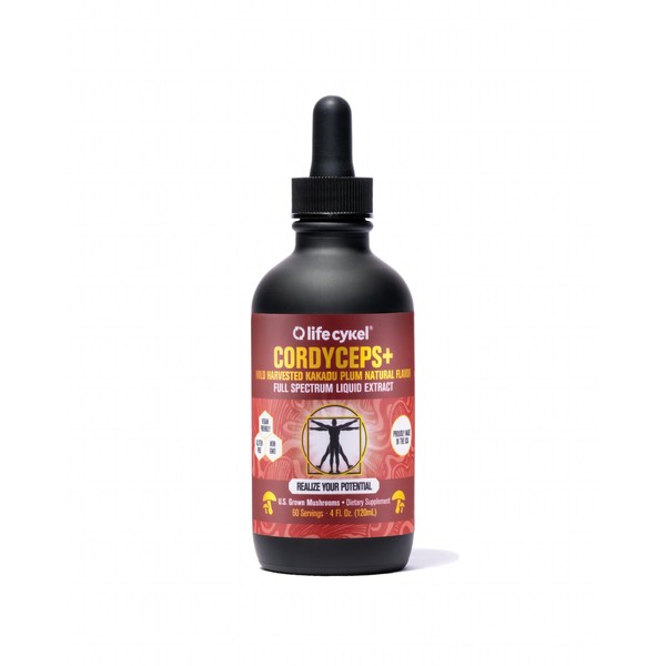 Lifecykel Cordyceps Mushroom Extract with Kakadu Plum - Energy, Stamina & Vitality Support, Natural Aging Supplement - Non-GMO and Vegan Tincture - 4Fl Oz