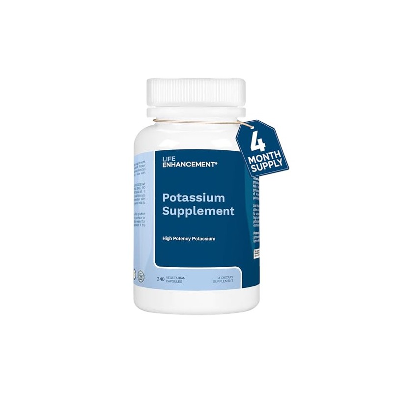 Life Enhancement High Absorption Potassium Supplement for Muscle, Brain & Bone Health - No Additives High Potency Elemental Potassium Supplement is Made in USA (240 Capsules – 120 Servings)