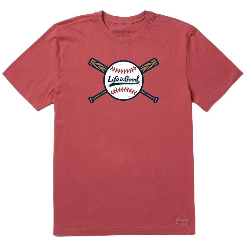 Life is Good Men's Crusher Tee Baseball and Bats, Faded Red