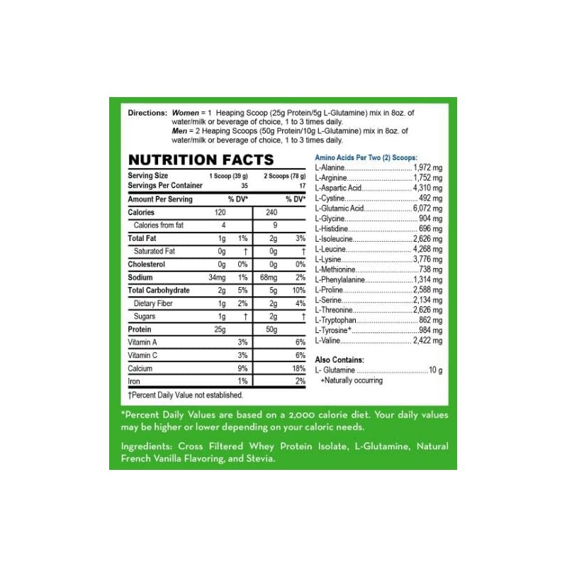 - Pure Clean All Natural Proprietary Blend Protein 100% Whey Protein Isolate: Only 5 Ingredients: Cross Filtered Whey Protein, L-Glutamine, Natural Cocoa, French Vanilla and Stevia. Also available in Chocolate.