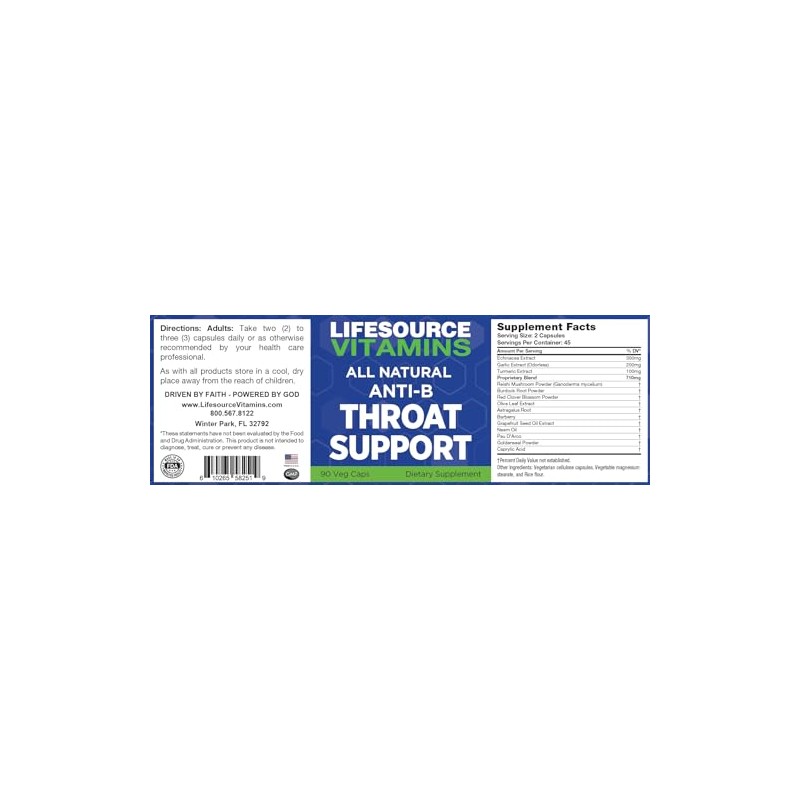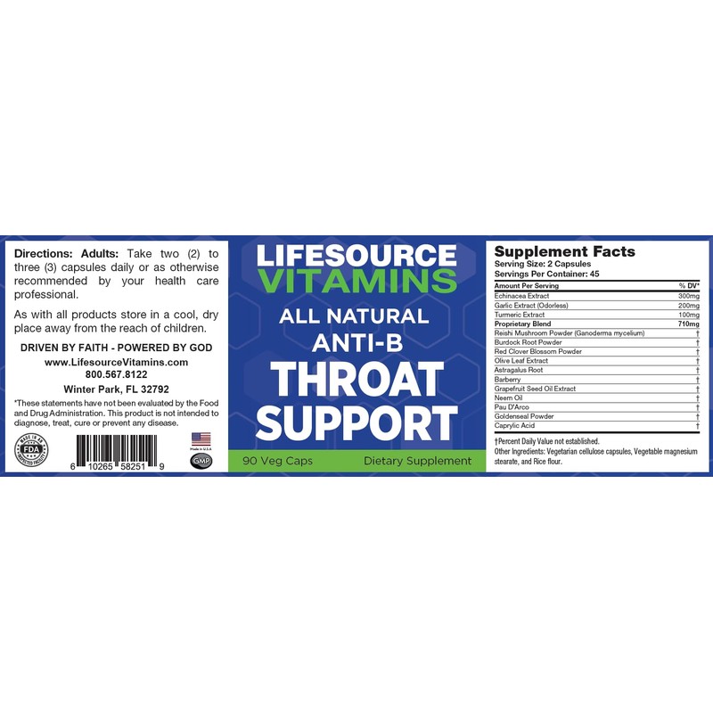 LifeSourceVitamins Throat Support - Anti-B - 90 Caps - Proprietary Formula -LSV, 1 Count (Pack of 1)