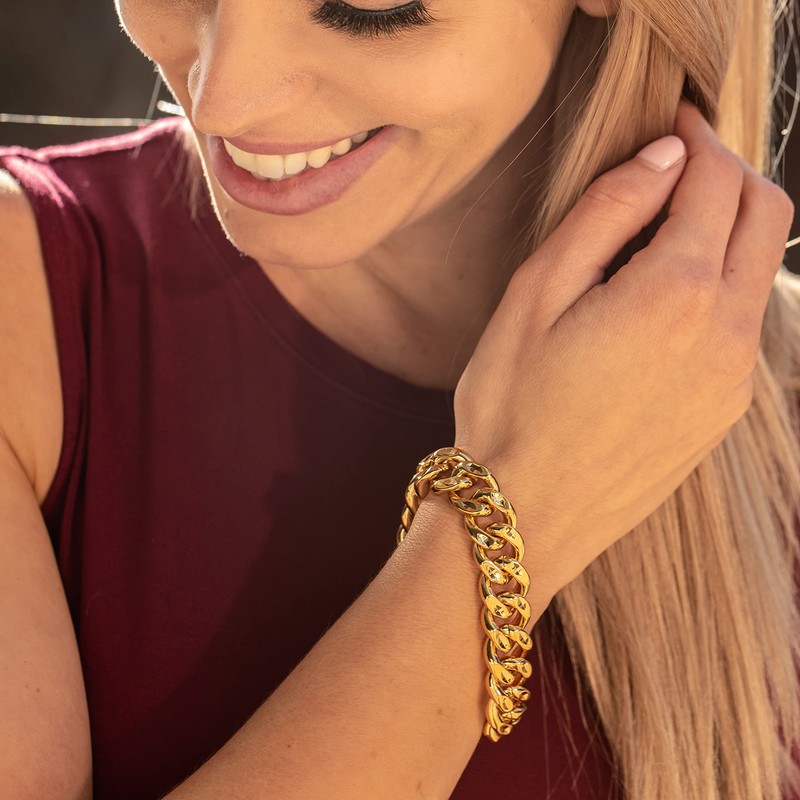 - These Extra Large Luxurious 14mm ( just over 1/2 inch ) Miami Curb bracelets are Made To Last with up to 20X more 24 karat real gold plating than standard electroplated fashion jewelry; Make a bold statement with this dazzling design that reflects the light