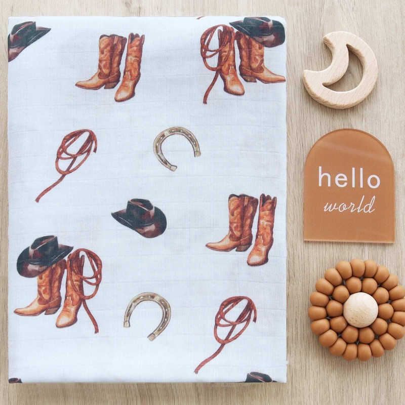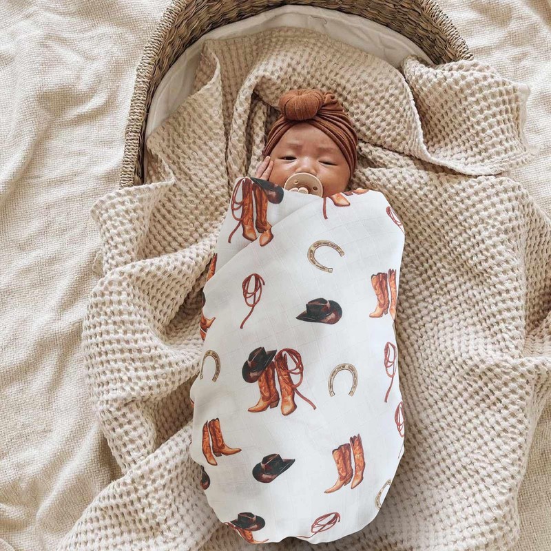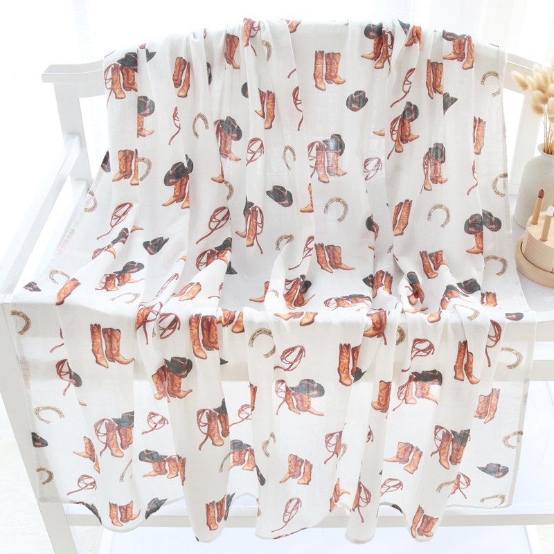 LifeTree Baby Swaddle Blankets, Muslin Swaddle Blankets Boys Girls Swaddling Wrap Receiving Blanket for Newborn, 70% Viscose Bamboo and 30% Cotton, Large 47" x 47", Horse Pattern