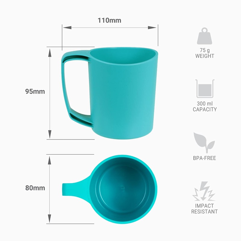 - DIMENSIONS: Plate: 230 x 275 x 30 mm (Weight: 135 g) | Bowl: 145 x 175 x 70 mm (Weight: 70g) | Cutlery: 180 x 40 x 15 mm (Weight: 30) |300ml Mug: 95 x 110 x 80 mm (Weight: 75g)